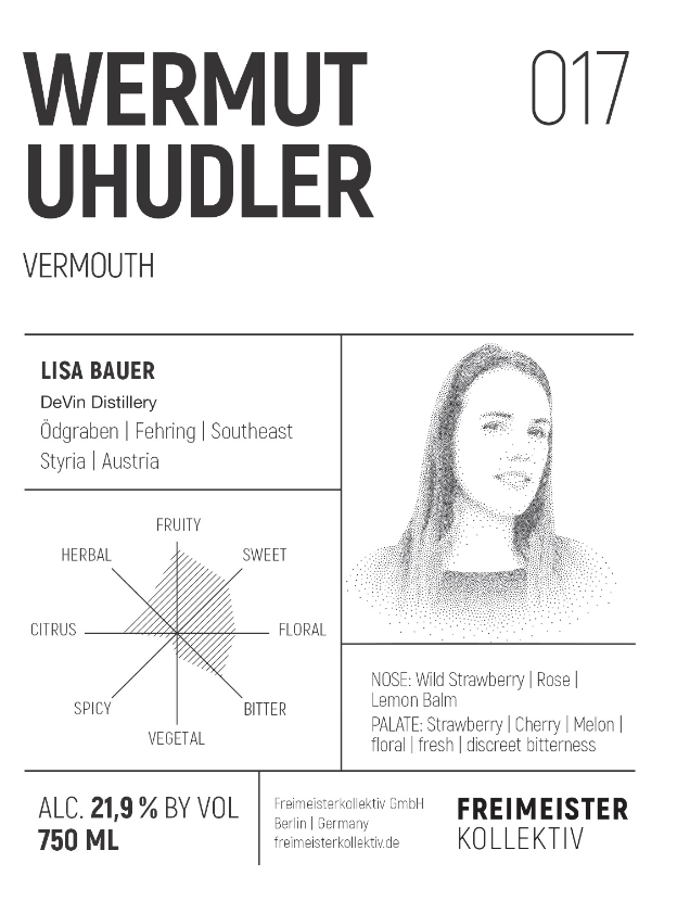 Uhudler is a wine that is grown only in a small area in south-east Austria, close to the Slovenian and Hungarian border. After the time of the phylloxera disaster, these highly resistant vines were cultivated. When grafting was discovered as a solution to the phylloxera infestation, Uhudler was repeatedly banned. As a result, its mythical reputation grew. Uhudler is characterized by its fox IN tone, an intense strawberry aroma. Lisa Bauer, distiller and winemaker with roots in the Uhudler region, emphasizes these typical flavors. The result is an unique red vermouth that gives cocktails its Nam own twist and is great served with tonic or on Ice.fen